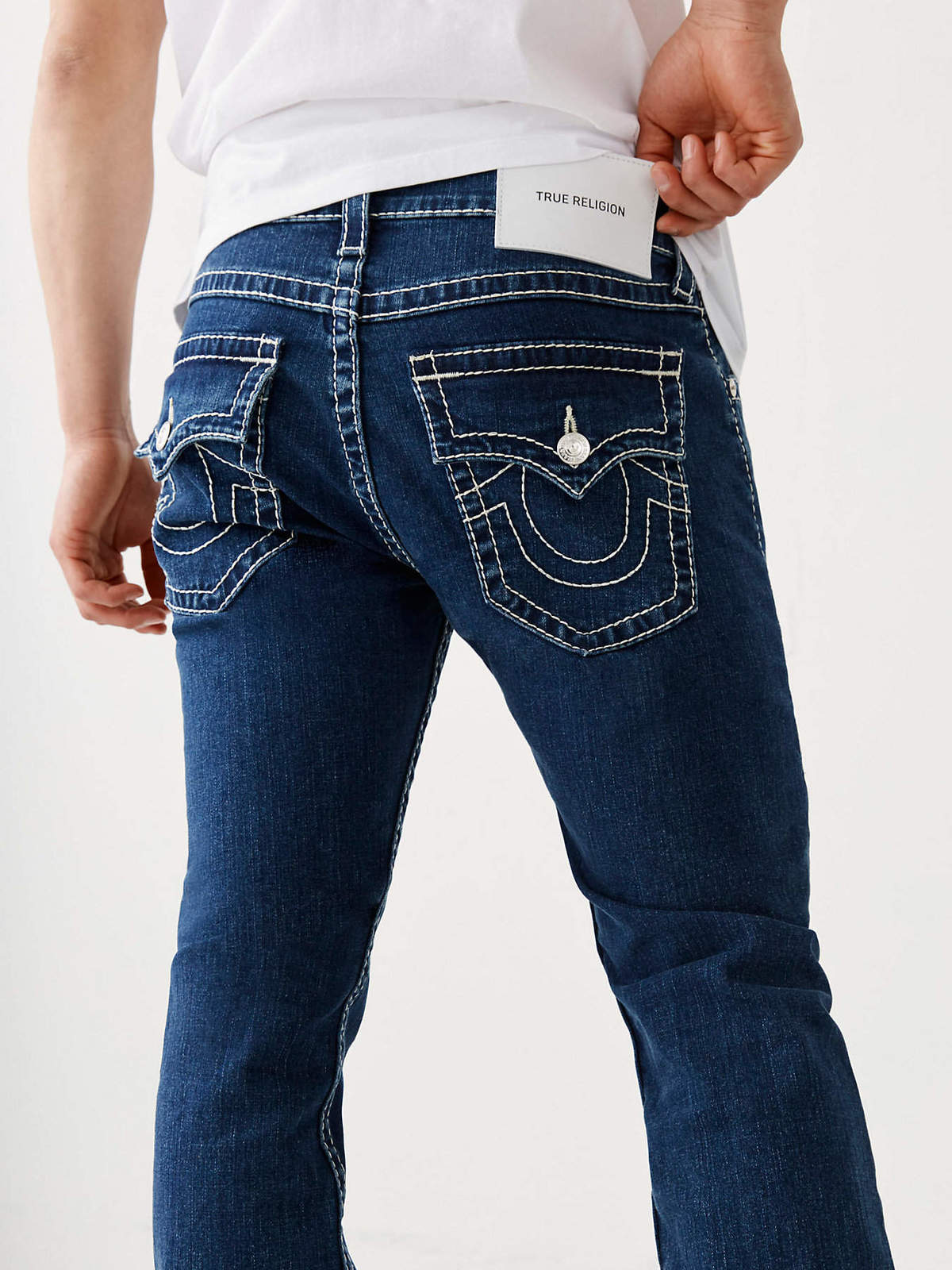 See why everyone loves our Ricky Jean. This men's straight jean features super subtle fading and 3D whiskering, copper hardware, and three tone Super T stitching. Finished with 1/2" horseshoe detailing along the back flap pockets and our regular 34” inseam. Style: 107040